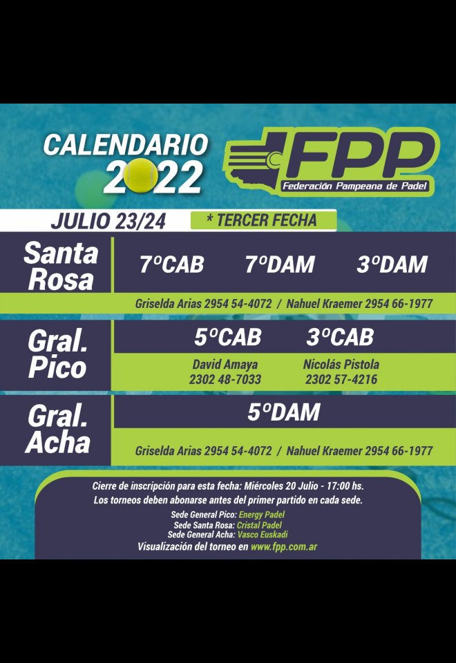»» Evento: 3ra ETAPA LIBRES CATEGORIAS IMPARES »» Localidad: General Acha | General Pico | Santa Rosa »» Fechas: 23/07/2022 al 24/07/2022