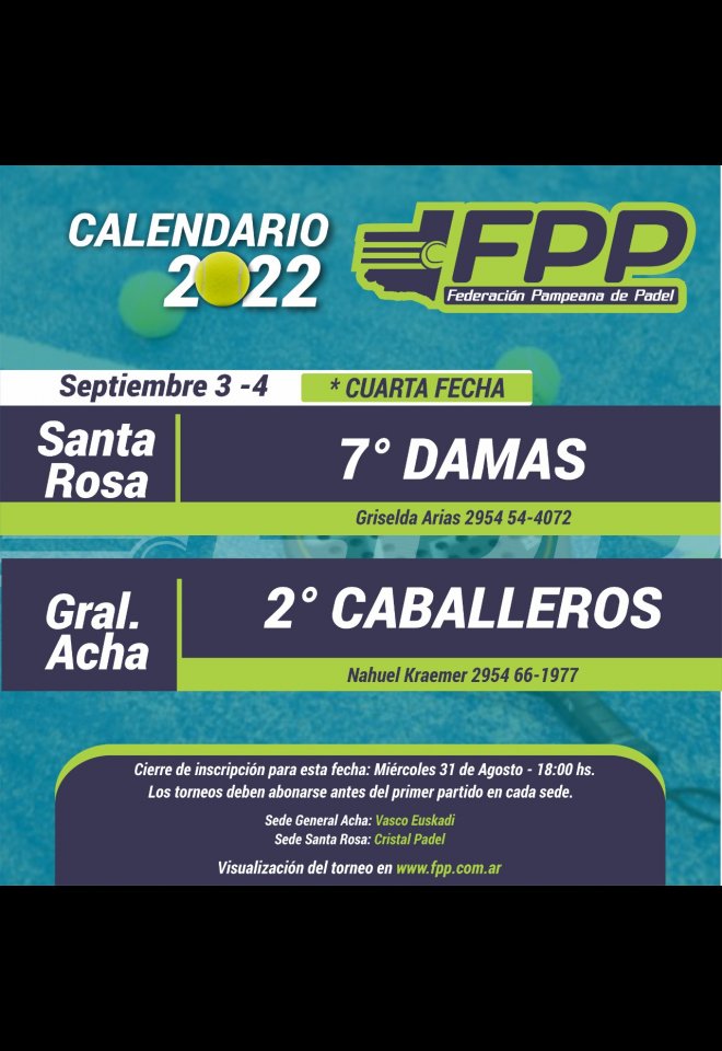 »» Evento: 4TA ETAPA 2DA CAB 7MA DAMA »» Localidad: General Acha | Santa Rosa »» Fechas: 03/09/2022 al 04/09/2022