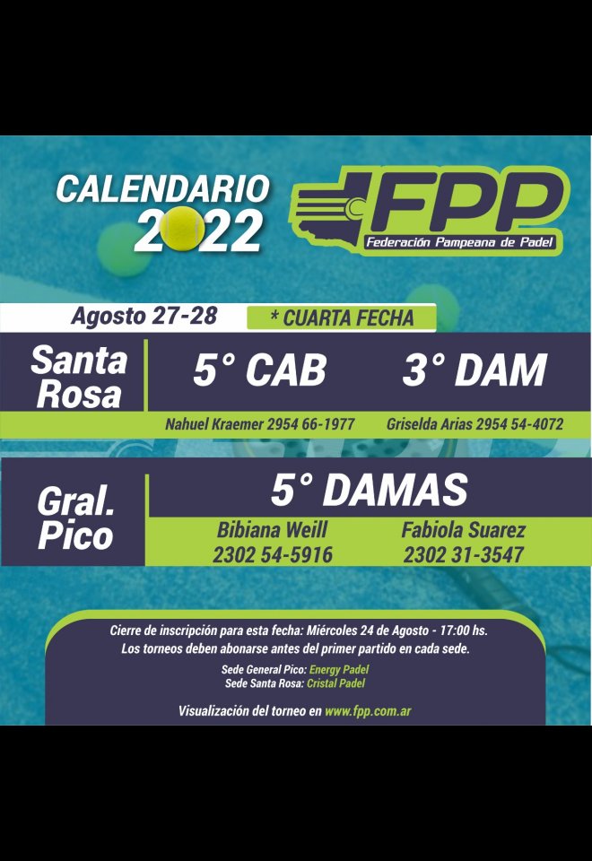 »» Evento: 4ta Etapa categorias Impares »» Localidad: General Pico | Santa Rosa »» Fechas: 27/08/2022 al 28/08/2022