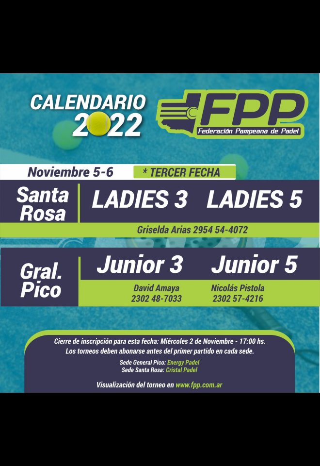 »» Evento: 3RA ETAPA LADIES Y VETERANOS »» Localidad: General Pico | Santa Rosa »» Fechas: 05/11/2022 al 06/11/2022