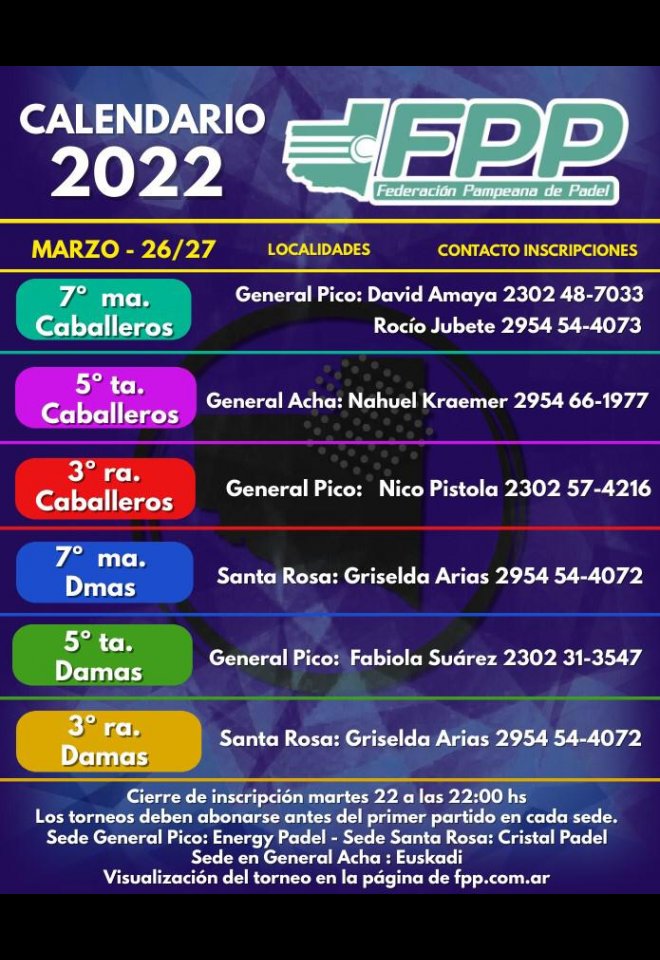 »» Evento: FPP - 1ra Etapa - IMPARES »» Localidad: General Acha | General Pico | Santa Rosa »» Fechas: 26/03/2022 al 10/04/2022