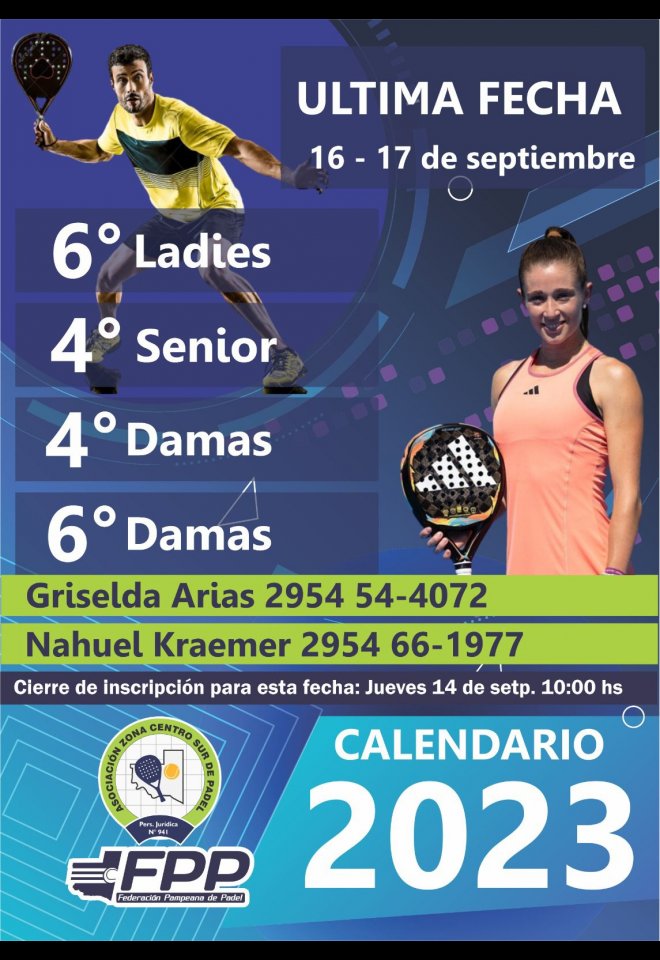 »» Evento: FPP - Ultima Fecha - Senior 4º y Ladies 6ta »» Localidad: Santa Rosa »» Fechas: 16/09/2023 al 17/09/2023